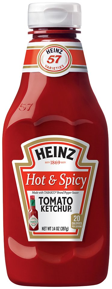 Heinz Hot and Spicy Tabasco Ketchup is packed in a 14 ounce upside down squeeze bottle with a flip cap for clean and easy serving making it the perfect bottled ketchup for family picnics barbecues and camping trips. Heinz No-Sodium Added Ketchup Heinz Hot and Spicy Kickrs Heinz Easy Squeeze Ketchup Heinz Chilli Ketchup Heinz Hot Ketchup Heinz Curry Ketchup Heinz Tomato Ketchup. Heinz Product List 2011.